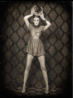 I used a variety of Westcott gear to create my images, for example two Bruce Dorn Select Asymmetrical, 12×50 Strip Bank. One strip was placed to light the background while the other was placed above the model and used as a hair light. Just below the hair light I placed a Westcott Triflector to catch all the falloff light and also to highlight the model’s accessories. My main light source is a beauty dish positioned about 30 degrees above the model. I used a Drop it Modern damask print “Vixen” Backdrop also. In post-production, I gave my images a wet plate feel.