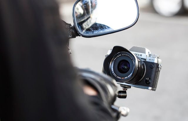 We mounted the XT-1 and a XF 14mm f/2.8 lens with a magic arm as if it were an action camera to the handle bars of the motorbike. This was an awesome perspective: the results have a dramatic, high impact advertising feel and the file quality is superb on the XT-1 so I could go a little more crazy on the editing.