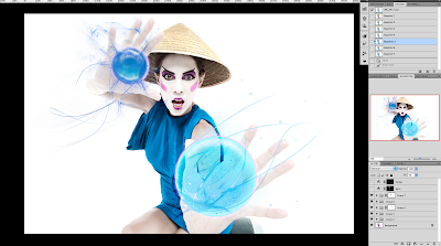 We wanted to create the feel of energy emitting of her hands, so for this I added a new layer and chose a fractal brush that would give the sensation of covering the sphere.