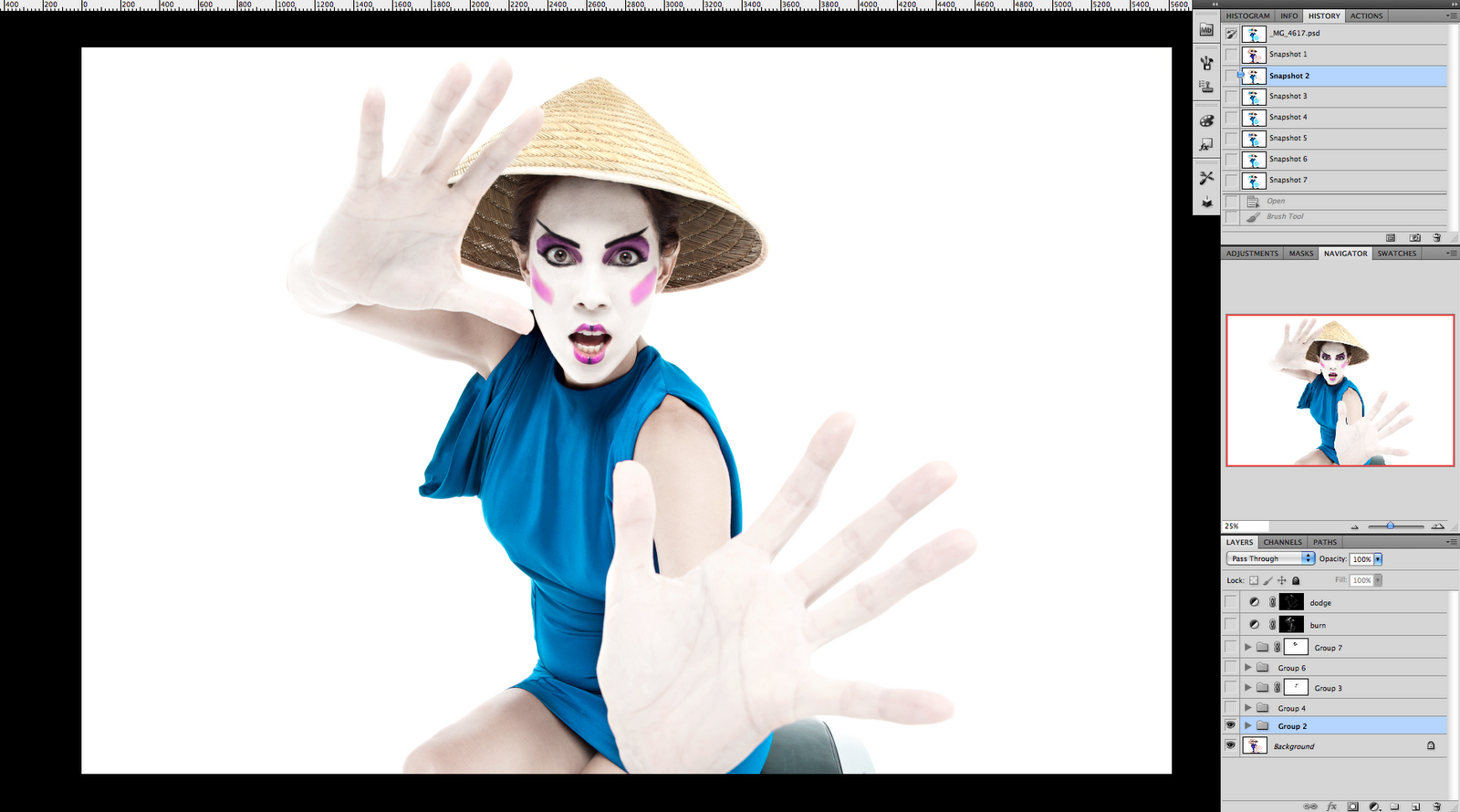 The idea was to create a modern goddess of peace, and the first step was cleaning the image and make basic color correction to it.