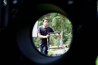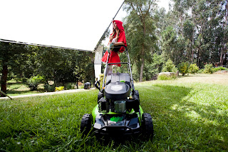 This is one of the images where our LRRH is mowing the lawn and apparently there’s not much to it in terms of lighting, but as you can see from the following behind the scenes images, it took quite a setup to achieve this look: