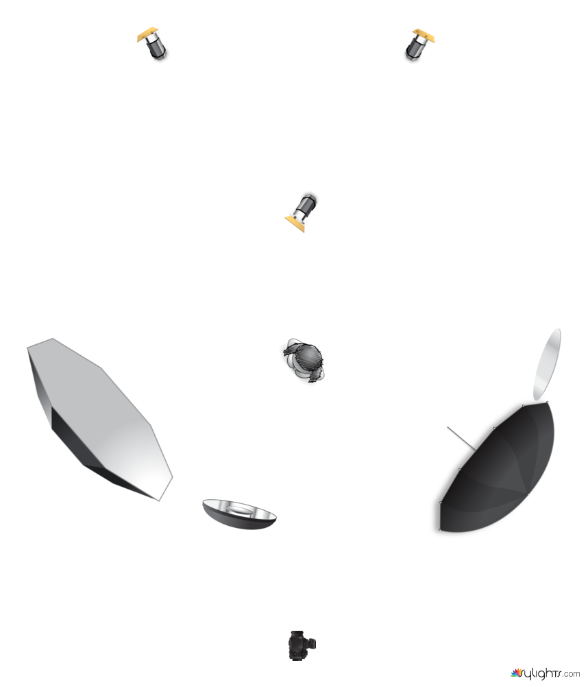 I used the Westcott 5′ Pro Signature Octabank, along with a Profoto Beauty Dish, aka a White Softlight Reflector. For fill, I added a Westcott 7′ Silver Parabolic Umbrella and a Profoto silver reflector.