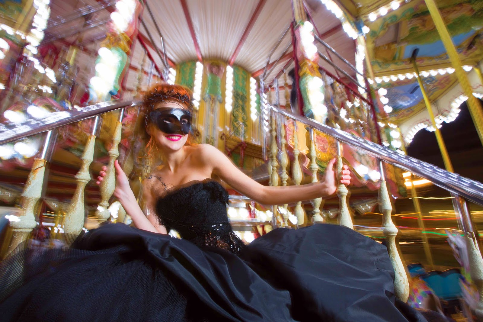 Both the model and myself were moving on the carousel as it moved. I shot at f/22 at 1/2 sec. This enabled me to freeze the model and capture all the movement, which made the Image so much more interesting.