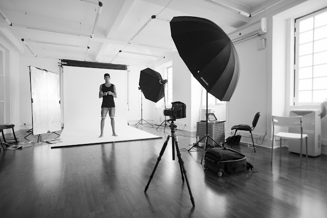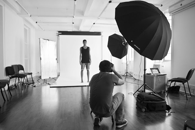Above: Joao shooting below the hip line so his model would look taller . |